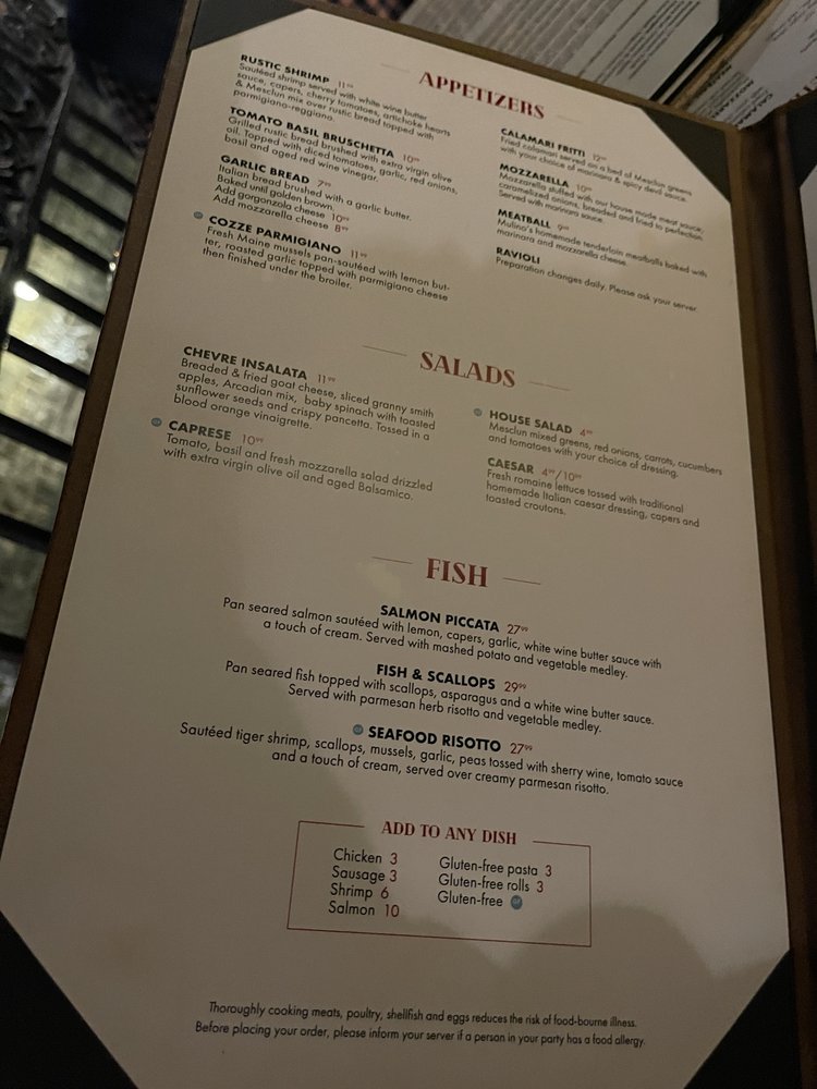 With amenities such as wheelchair accessibility and a dog-friendly policy, Mulinos ensures all guests feel welcome. It's clear that this restaurant is not just about good food but also about creating memorable dining experiences.